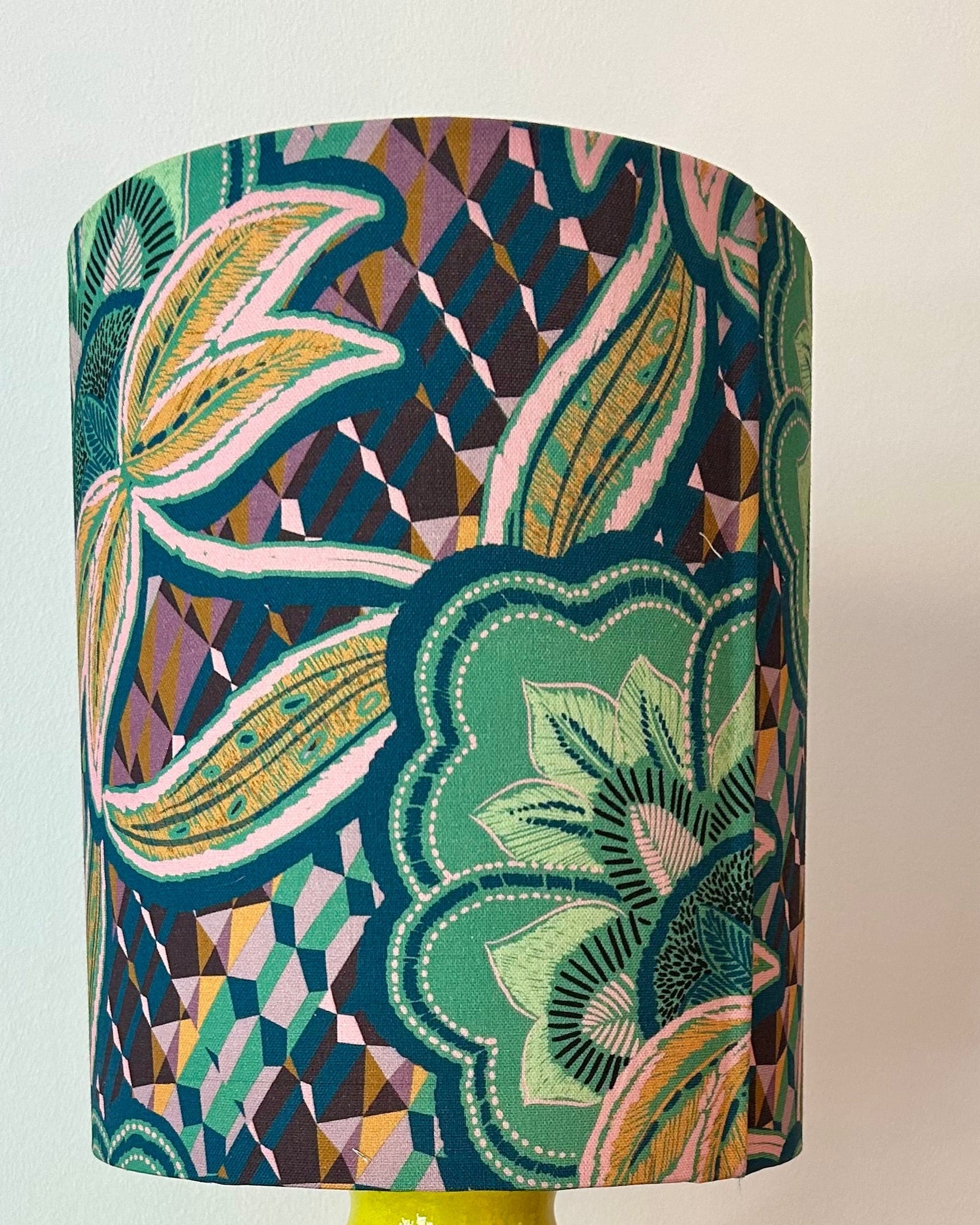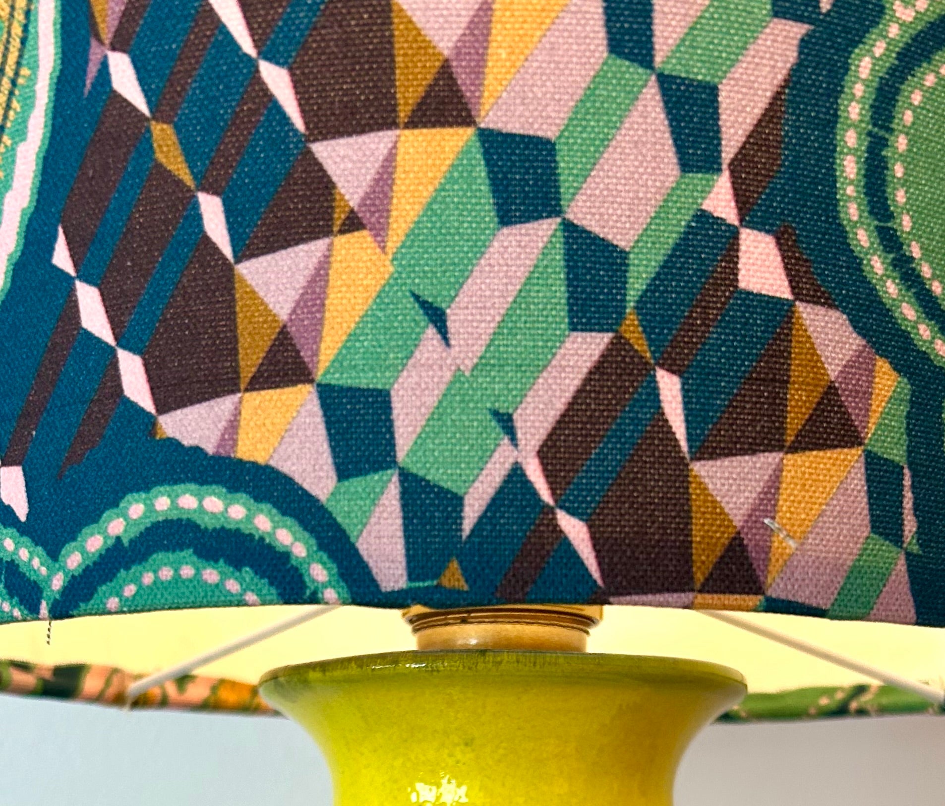 Lampenschirm aus eigener Werkstatt mit grafischem Muster